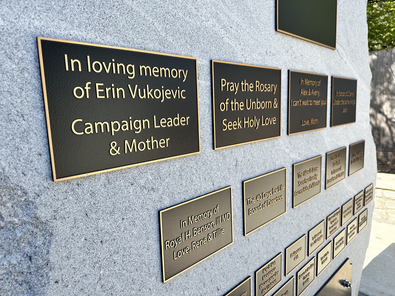 40 Days for Life started in Texas and has inspired communities around the world to pray, fast, and end abortion at the local level. The world came knocking. By the grace of God, this effort is not something in the past, but is active around the world where abortions happen every day. This Memorial to the Unborn not only honors those lost at this location, but serves as a call to action that we must be a voice for the voiceless in every community where abortion takes place.